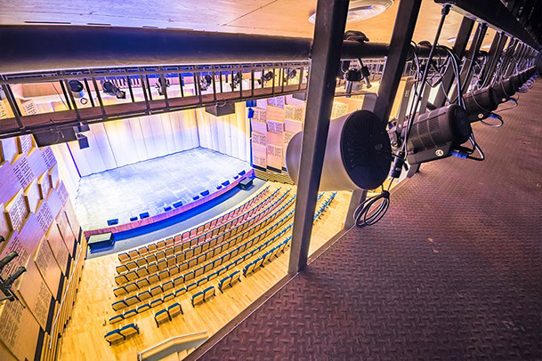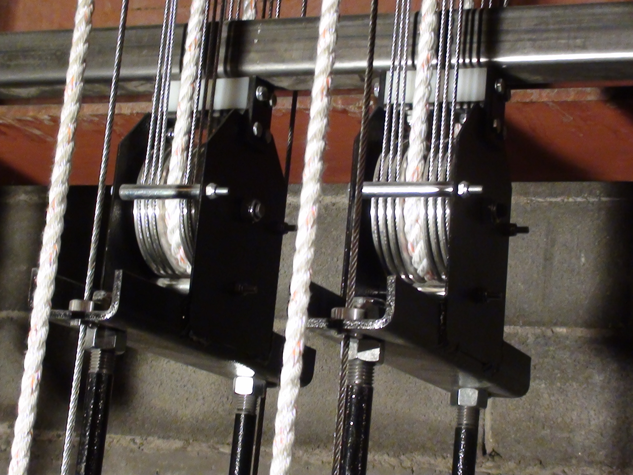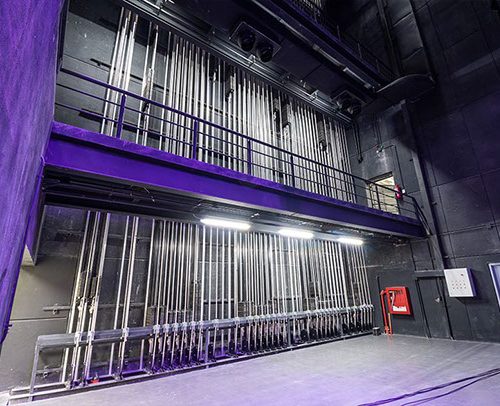 En un escenario de teatro los sistemas de elevación permiten la ubicación, la sustentación y desplazamiento vertical de telones para teatros escénicos, decorados y equipos de iluminación instalados sobre el escenario.